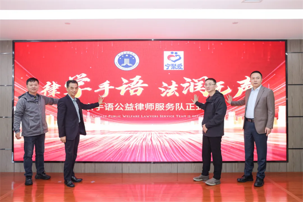 11月10日,市局、市律协、市残联共同发起成立“宁聚爱”南京手语公益律师服务队,并启动“宁聚爱-律手护”专项行动,为全市约1.4万名听障人士提供优质法律服务。市局党组成员、副局长、市律师行业党委书记王庆,市残联党组成员、副理事长乐松,市律协会长刘伟,市聋协主席屠永成出席启动仪式。