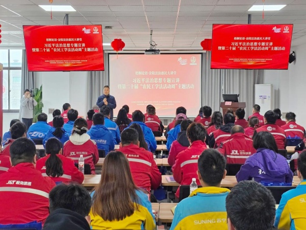 近日,由市委宣传部、市委依法治市办、市司法局、人社局、农业农村局、邮政管理局、法律援助中心、快递行业工会联合会、快递协会等共同主办“梧桐论语·金陵法治惠民大讲堂”习近平法治思想专题宣讲暨第二十届“农民工学法活动周”主题活动在圆通速递南京转运中心举办,现场50余名新业态劳动者参加。