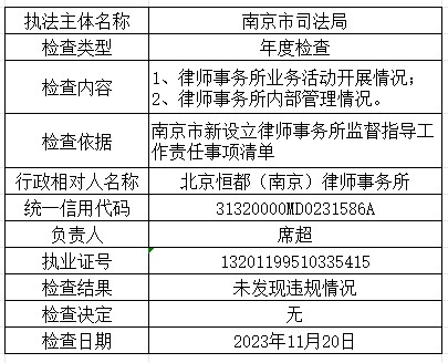 南京市司法局对北京恒都(南京)律师事务所行政检查